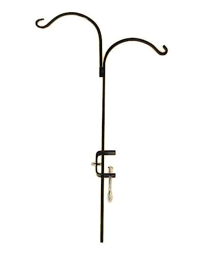 Heavy duty hand forged wrought iron deck bracket is ideal for hanging birdbaths or bird feeders- offering close up views from inside your home. Great for hanging flower baskets too, double-arm deck bracket is perfectly suited for smaller spaces.