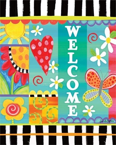 Durable vinyl welcome pole is an innovative reproduction of original hand painted artwork to brighten up the garden!